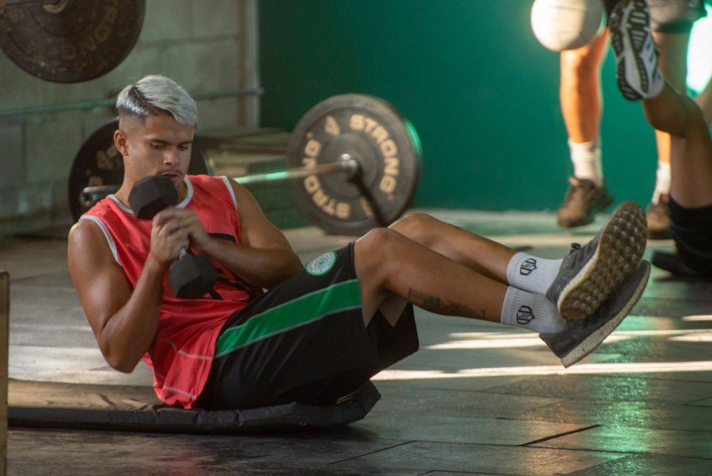 En primer lugar se ubicaron 4 estaciones por separado donde los futbolistas debían de realizar distintos circuitos de explosión, coordinación, potencia y velocidad.