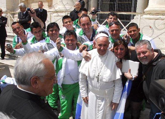 as de viaje, y nuestra llegada a Roma, plagada de micros, autos y turistas no fueron obvice para contemplar la Santa Sede, inmensa, impoluta, magestuosa en todos su aspectos. Eran miles y miles de las culturas más diversas y ahí, en las escalinatas a dos metros del Papá, NUESTROS CAMIONERITOS, que observaban perplejos, absortos, con su indumentaria oficial. De todo esto existe un tipo con un corazón enorme, que hizo posible este milagro, que al parecer, no será el único.