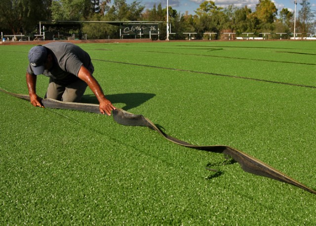 Una vez concluido este importante trabajo de movimiento de suelo, se avanzará con la inmediata construcción de un cordón cuneta de hormigón armado, que bordeará la cancha en forma de “L”, tras lo cual se procederá al tendido de la carpeta césped sintético.