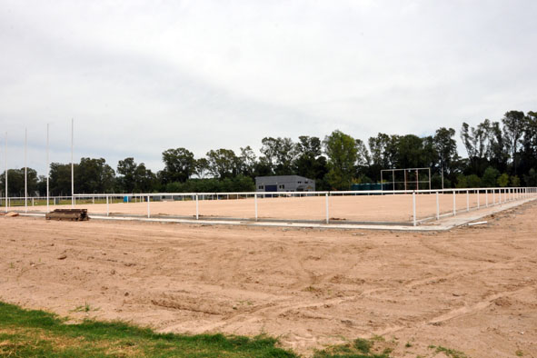 rando en calor (fue invitada para inaugurar la cancha). Avanza a buen ritmo la construcción de la cancha de hockey de césped sintético del Club Social y Deportivo Camioneros. La inauguración está prevista para fines de Enero. El proyecto de construcción de la cancha de césped sintético había comenzado a ejecutarse, por una decisión de la Comisión Directiva de la institución que preside Pablo Moyano, hace 90 días y demandará al menos 30 días más, debido a las importantes tareas de nivelado de suelo que demandó el predio. “La cancha estaba en una zona muy baja, por lo cual se debió sacar íntegramente el suelo vegetal y proceder al posterior relleno del predio, lo que demandó la movilización de más de 60 camiones de tierra”, recalcaron entendidos en el tema. Una vez concluido este importante trabajo de movimiento de suelo, se avanzó con la inmediata construcción de un cordón cuneta de hormigón armado, que bordea la cancha en forma de “L”, tras lo cual se procederá al tendido de la carpeta césped sintético. Esta carpeta de césped sintético cuenta con un pelo de cuatro centímetros de altura, que deberá ser cubierto en forma íntegra por a