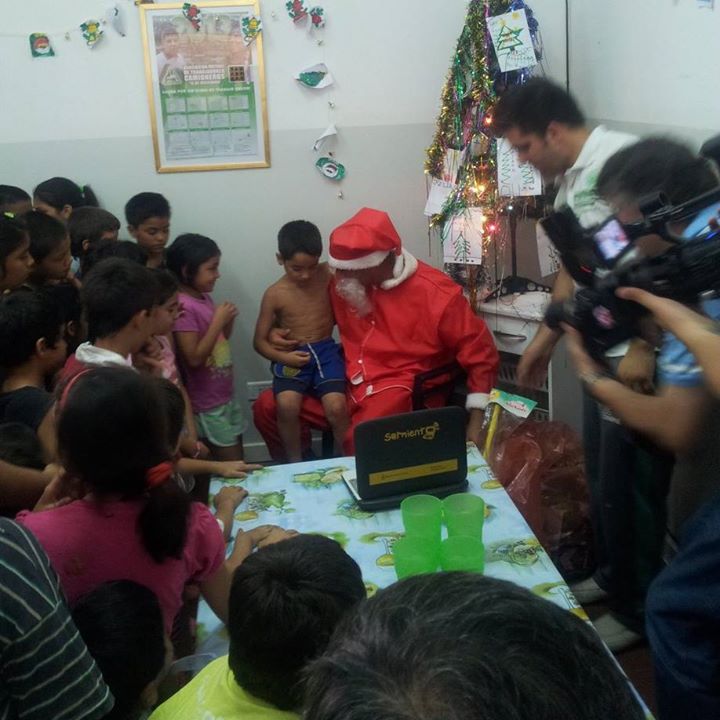 pesadillas con mezcla de sueño, y sueños con tintes de pesadilla. Iban imaginando tamaños y formas de los regalos. Profundos estudios de peso con relación a contenido, colores de los papeles envoltorios, profundidades de cajas y posibles trampas de regalos pequeños en cajas grandes. Todo era estudiado minuciosamente a pesar de conocer su naturaleza impulsiva. ¿Para que tanto pensar si abrir un regalo les llevaría centésimas de segundo? si hasta parecían que les salían garras de oso para poder destrozar más velozmente el paquete y llegar a su regalo. Cientos de chicos recibieron en La Boca y el reconocimiento al Sindicato de Camioneros, a Pablo y Hugo. De todas las familias y de aquellos que trabajan en el lugar. Un premio a las debilidades. Un galardón a soportar las reglas de los mayores en mi mundo simple: Papá Noel, cumplió con lo suyo y ellos te seguirán queriendo y esperando.