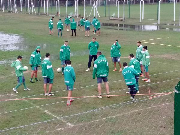 Afectado por las inclemencias climáticas; las cuales condicionaron el predio, pero a pesar de esto, el plantel de primera se dispuso a comenzar entrenando como es habitual, con una charla a todo el grupo a cargo de Jose Barrella y Walter Parodi, luego de esto, se dividían en tres grupos para entrar en calor realizando trabajos con pelota mientras que Christian Sanchez y Fernando Regules terminaban de preparar las áreas de trabajo junto con Marcelo Velazquez.
