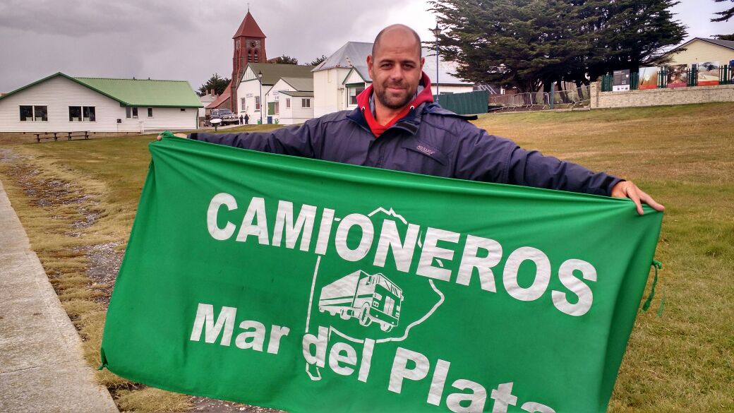 able ayuda de los preparadores Andrés Rozo y Claudio Plit (El Rosarino, 4 veces campeón de aguas abiertas y presente en el salón de la fama de EE.UU.). Tras esa larga y dura preparación arribaron a las Islas el 12 de Marzo, gracias a la ayuda económica del Sindicato, las colectas y las cenas, pudieron viajar. Estos patriotas el día 16 realizaron la proeza y tuvieron en su mente las palabras de Julio Aro «CUANDO ESTEN NADANDO PIENSEN QUE NO ESTÁN SOLOS. HAY 648 ALMAS QUE LOS ACOMPAÑARÁN». Ellos pensaron que tal vez lo harían en 3 horas, sin embargo lo realizaron en 1,40 hora, entre el agua helada y los delfines que los escoltában, llegaron a la orilla. Tras cartón, esas mismas mallas con la bandera Argentina, fueron llevadas al Cementerio de Darwin y las enterreraron. Justo en el mismo lugar donde un par de años atrás, pusieron 250 Rosarios bendecidos. SON ARGENTINOS, SON CAMIONEROS Y SON OTRO ORGULLO que les queríamos mostrar.