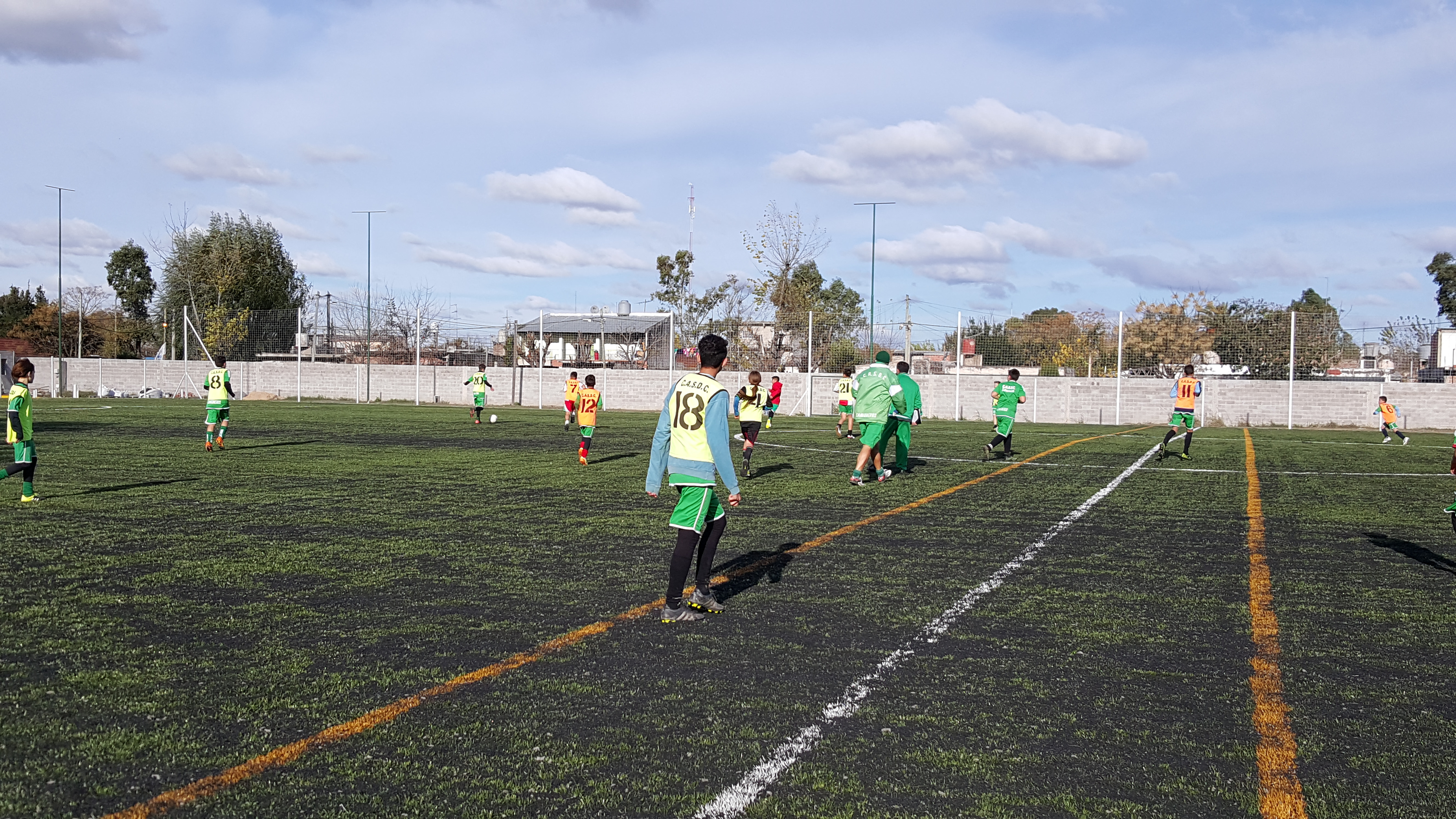 s infantiles entrenaron en el campo, con medidas reglamentarias e iluminación. En el complejo, donde están los vestuarios de inferiores, se trabaja en forma denodada para terminar las nuevas utilerías, divididas por categorías, con mobiliario nuevo. Allí donde ya mostramos la concentración y sus comodidades (El Chalet), a su alrededor los chicos de las categorías más pequeñas, entrenan, utilizando el parquizado y la hermos