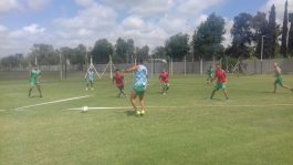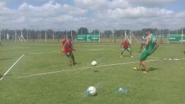 Mientras tanto, en uno de los arcos se ensayó con los porteros, que pusieron a prueba sus reflejos con disparos a puerta desde frente y centros desde los costados, y más tarde practicaron sus habilidades para sacar con el pie.