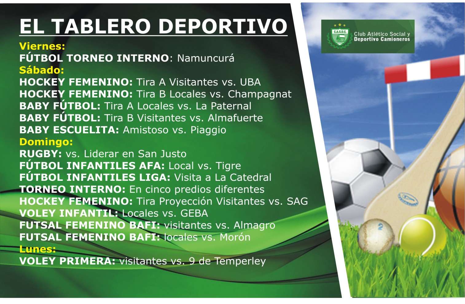 CAMIONEROS presentará durante el fin de semana miles de deportistas diseminados a lo largo y a lo ancho del país y aquí te anticipamos, en principio, algunas de las disciplinas en las que intervendrá.