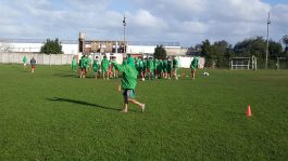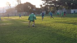 Cuatro calles de ‘mejorado’ con mucha agua por todo lo que había llovido entre la noche del martes y hoy. Un complejo que cuenta con 4 canchas en buen estado. La principal lleva el nombre de su fundador, «Estadio Juan Montoya», que a su vez, es utilizada exclusivamente por la Primera División, cumpliendo las condiciones reglamentarias por la liga marplatense de fútbol. «En ésta hoy no se puede porque se va a romper toda», nos anticipában los dirigentes del Azulgrana cuando arribamos cercanos a las 15,00. Otra de las canchas, es utilizada por la Quinta División, cuyas dimisiones son inferiores a la Primera, esa fue la elegida para realizar la tarea entre todos los profesionales, técnicos, ayudantes, cuerpo médico etc.