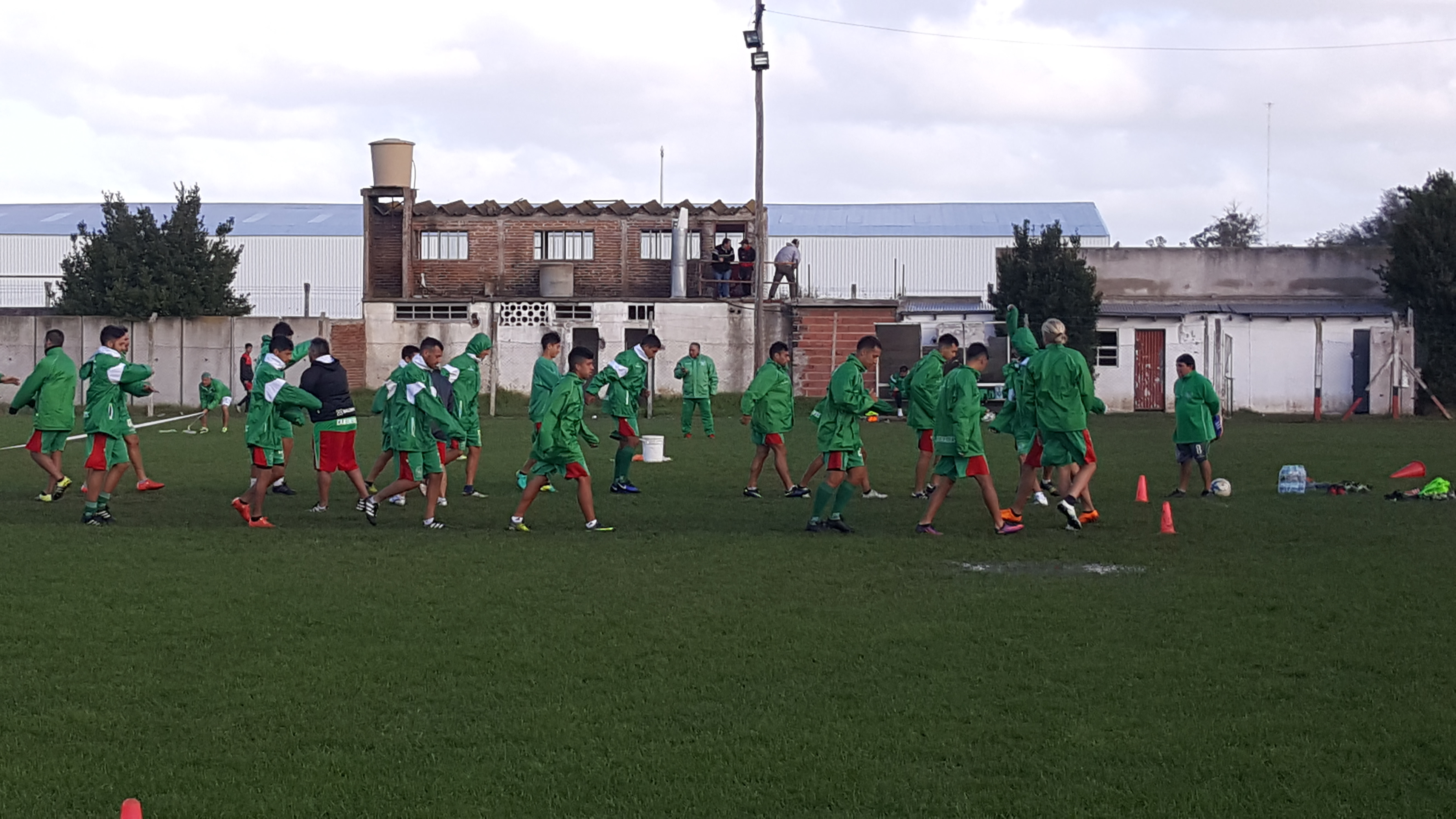Ahí vimos en acción a los muchachos. Trabajo de calentamiento, y tras cartón tareas en espacios reducidos, limitados por cintas que armában cuadrados en toda la superficie de la cancha. En tanto que sobre el arco de la ruta 88, los cuatro