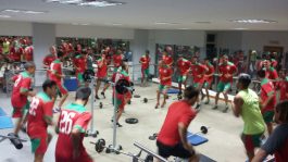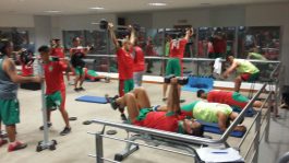 A las órdenes de los preparadores físicos se efectuaron tareas de fuerza, en distintos ciclos y con ejercicios variados. Como muestran las imágenes y fotos tomadas, no bajan la intensidad, aunque a partir de ahora lo primordial será darle «pelota» y eso sería por la tarde.