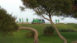 A las 12 los jugadores abordaron el micro, una ducha, el almuerzo en el hotel y a descansar. Por la tarde la tarea se realizó en estaciones en Punta Mogotes, con complementos de trotes y regenerativos. Ampliaremos.