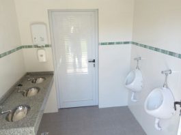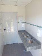-Se han terminado y listos para su uso, los baños del quincho. Las duchas son 6 en total y las piletas (también 6) son de mármol y secamanos alta tecnología, con aromatizadores automáticos. El cieloraso tiene plafones de última generación y la superficie cubierta es de 6 mts. de ancho por 13 mts. de largo.