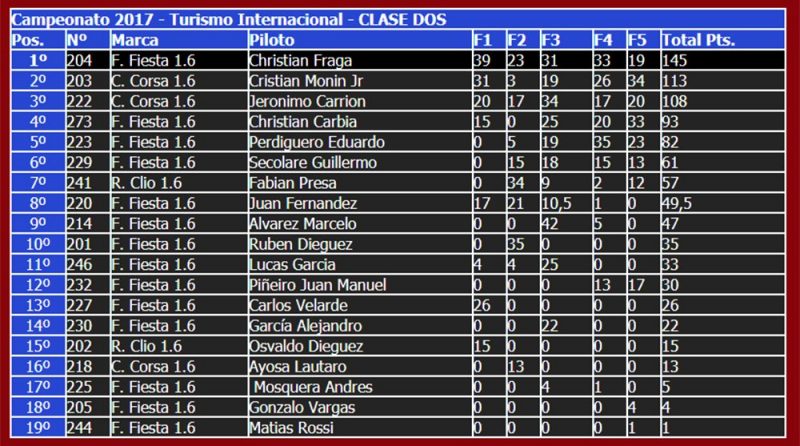 POSICIONES Y FECHAS DEL T. INTERNACIONAL