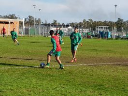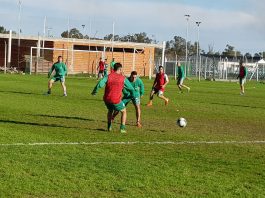 Y la tarde acompañó (18º la temperatura), una práctica intensa realizada en la cancha 2, bajo la mirada y la dirección de GUILLERMO CALLERI «estamos bien, sabemos que los rivales nos plantean diferentes esquemas que debemos sortear y por eso trabajamos en las variantes para poder romper los ‘candados'» Tras una entrada en calor propuesta por los Profes Olgiati y Aquino, los muchachos recibieron pecheras Rojas y Verdes y arrancaron. En tanto que los arqueros ya habían efectuado una tarea