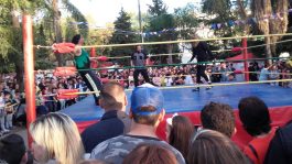 El luchador de CAMIONEROS viene con agenda completa. Hace una semana compitió en Villa Devoto, en Beiró al 4800 ante más de 3000 chicos y grandes. Todo lo recaudado fue para un comedor de la zona y para Entre Ríos. Todos vibraron con los atletas de Por Siempre Lucha y