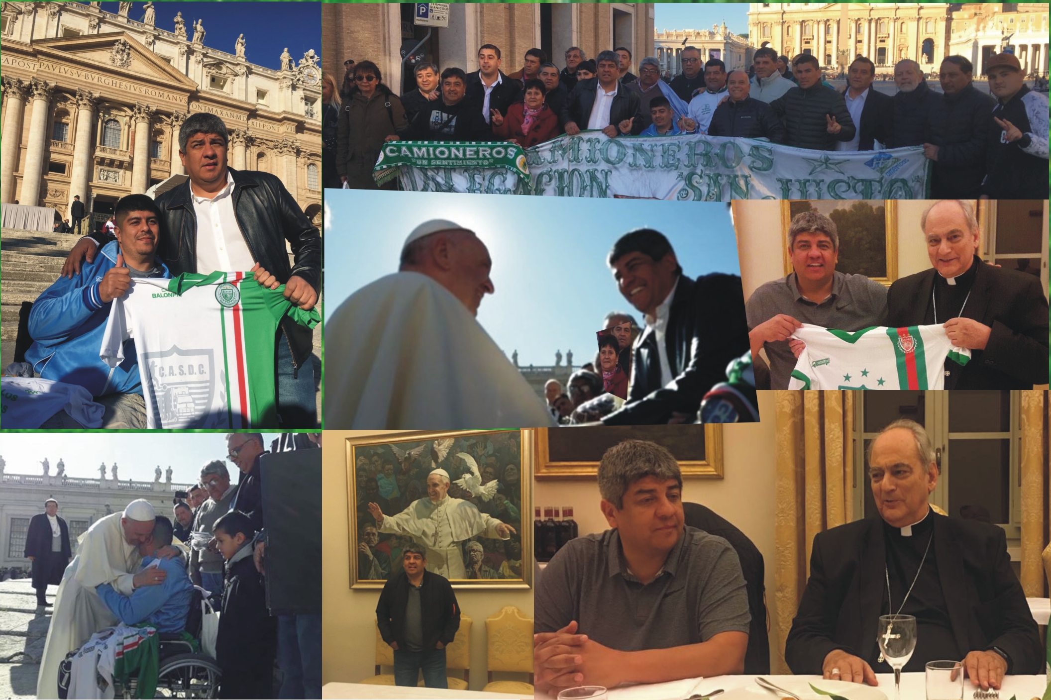 Otra vez la Plaza San Pedro fue testigo de otro momento de alto voltaje emotivo. Ahí una delegación Argentina de Camioneros fue recibida por Santidad, el Papa Francisco, en la audiencias que se realizan pasadas las 10 de la mañana ante una multitud. Ahí nuestro Presidente PABLO MOYANO encabezó a más 100 compañeros que fueron a tributarle su saludo y acompañamiento al Santo Padre. Estuvieron presentes represententantes del Sindicato de Camioneros, Comedor Infantil de La Boca y del Club Social y Deportivo