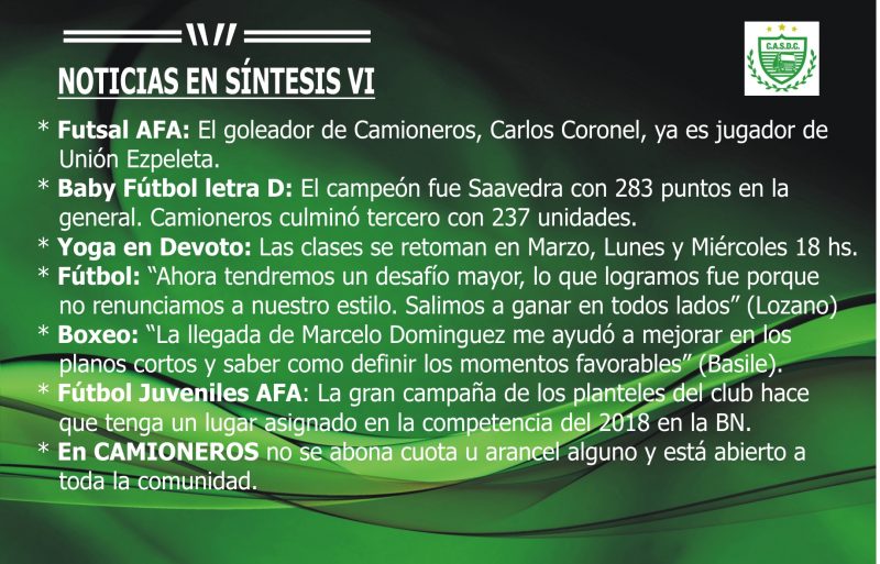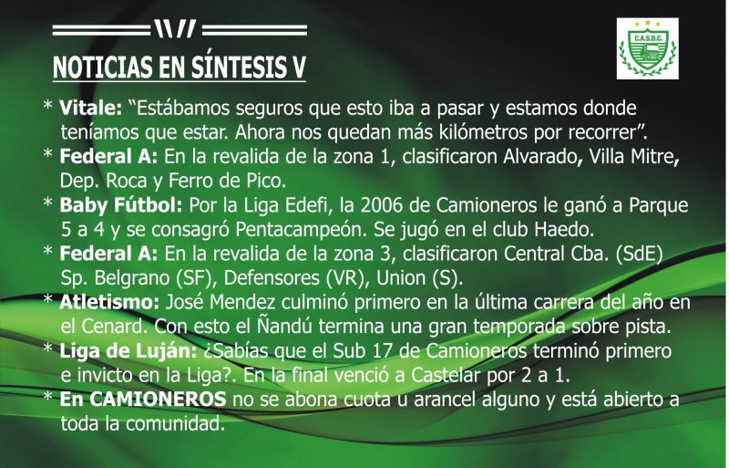 TOQUECITOS CAMIONEROS: La actualidad del club en 800 caracteres, tres veces por día, aquí y en el tweeter oficial del club (@casdcamioneros). Y recordá que podés revivir cada nota y la historia del club en nuestro canal http://www.youtube.com/clubsocialydeportivocamioneros