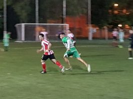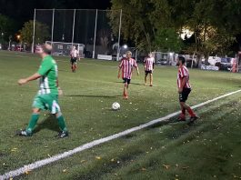 Un primer tiempo parejo donde el local quería manejar el trámite y lo conseguía cuando la pelota pasaba por los pies de Benitez y la Brujita, intentando aprovechar la movilidad de Amato. Generaron un par de punzantes ataques pero siempre encontraron bien parado al portero del verde y una defensa sólida. Ya sin Jara (desgarrado), el ingreso del Turu Peralta