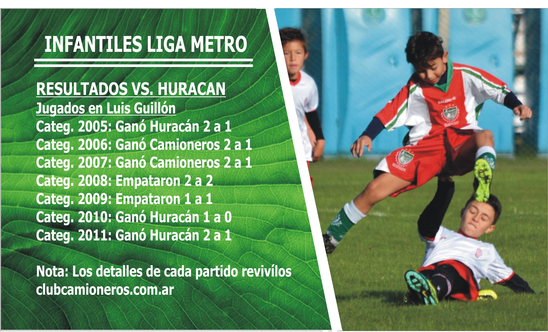 jugaron su primer encuentro del certamen, ante Huracán, en Esteban Echeverría. Las Categorías más chicas de Camioneros, recibieron al Globo y lograron una serie de partidos muy parejo, donde Huracán ganó 3 encuentros, empataron 2 y el local se quedó con 2. La jornada se dispuso a jugar en dos canchas, donde se disputó de la 2005 a 2007 en la cancha de sintético y de 2008 a 2011 en la cancha N2. En general, hubo grandes cotejos donde se destacaron varias categorías camioneras que le jugaron de igual a igual a un equipo que cuenta con buen potencial infantil de deportistas. El torneo recién arranca y habrá cosas que mejorar, pero el balance del día, hecho por los técnicos, fue positivo.