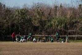 El objetivo era claro: “hagamos un lindo quilombo” dijo el capitán en los entrenamientos de la semana. La parada era clave, contra el primero de la tabla y con 8 puntos de diferencia. El verde sabía esto y salió con todo, una vez más. Antes de los 10 minutos ya ganaba 7-0. Lo que calmo las ansias y acompañado de una superioridad en el 1 contra 1. También el adversario cometió mas penales de lo conveniente y el apertura  Facundo “el pela” Lizarzuay no perdonó, estuvo infalible. Al igual que todo el equipo al momento de defender que cometió pocas infracciones. Aún estando poco efectivos en los line Camioneros pudo lastimar e irse al descanso con 20 puntos de diferencia. En la segunda parte del partido el visitante volvió a ser contundente en el contacto y no bajo la intensidad en ningún momento. Con estas claves y con el reloj a favor se empezó a ampliar más y más la ventaja y ya se hizo irreversible.