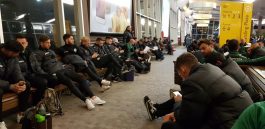 No habían aparecido los primeros rayos de sol, en la mañana porteña y ante una Ciudad que empezaba a desperezarse lentamente, el plantel de la Primera división de Camioneros, iba llegando a la terminal de Buquebus. Muchos en el micro, otros en una combi dispuesta desde la calle Victor Hugo y el resto por su lado teniendo en cuenta su cercanía. Ataviados con la nueva indumentaria oficial, que los acompañará durante éste ciclo, comenzarón pasadas las 6,30 el control de pasajes, equipaje y preembarque en el Padre Francisco, que zarpó de la dársena 4 a las 7,37 exáctamente, con una temperatura de 8º. Entre charlas grupales, algún «truco» en el lobby y un mate, se pasaron las 2,15 horas hasta amarrar en Montevideo, casi sin darnos cuenta. El micro RFJ2734 aguardaba la salida tras los controles aduaneros, y a las 10.19 hs. partió rumbo al hotel 4* Four Points By Sheraton en Ejido 1275 de Montevideo (frente al Municipio, a 5′ del Puerto, a 25′ de Carrasco, 1 km. de la ciudad vieja), previo paso por el Palacio Salvo (inaugurado en los años 20 del siglo pasado, ubicado en la plaza Independencia, un lugar considerado un símbolo de la capital Uruguaya). Con habitaciones dobles y 2 triples, el plantel descansó hasta las 12.38, luego bajó a almorzar, en el Salón Vip, con el siguiente menú: Arroz, Fideos, Salsas varias, ensaladas, sopa, milanesas y de postre: Frutas de estación, gelatina y ensalada de frutas.