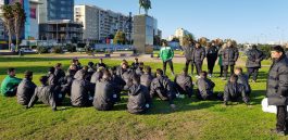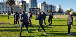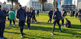 La actividad continúo tras la siesta, pasadas las 16,23, a 8 cuadras del hotel, en la Plaza contigüa al Río de La Plata. Ahí los Profes Olgiati y Aquino, efectuaron trabajos suaves fortaleciendo lo articular, sobre la zona de cintura, con ejercicios de verticalidad y de estabilización. Activación con pelotas, elongación, estiramiento, con o sin pelota. En el prólogo, el entrenador Guillermo Calleri efectuó una charla de 20′ con el plantel donde les hizo saber que la institución realizó un gran esfuerzo en hacer esta gira, como antes lo hizo en Chile y que eso fue producto de los logros conseguidos «Hoy Camioneros hizo 21 contratos profesionales, lo que significa un crecimiento a todo nivel, para ustedes, para su futuro y para el club, que deberá afrontar un torneo profesional. Ahora empieza una etapa de 7 partidos, donde vamos a buscar el equipo, y donde todos tendrán minutos de rodaje. Nunca les pedí que le pegaran de punta, si que jueguen bien al fútbol, si tiran un caño o una finta y la pierden, no hay problemas. Sí, no me banco que cuando no la tenemos dejen de correr para recuperarla. Luego vendrán finales, porque así tomamos este compromiso. Ustedes, nosotros y los que vinieron a acompañarnos, somos un solo bloque y debemos responder al sacrificio del Presidente y del club todo». Fueron algunas de sus palabras (ver nota en breve a la derecha).