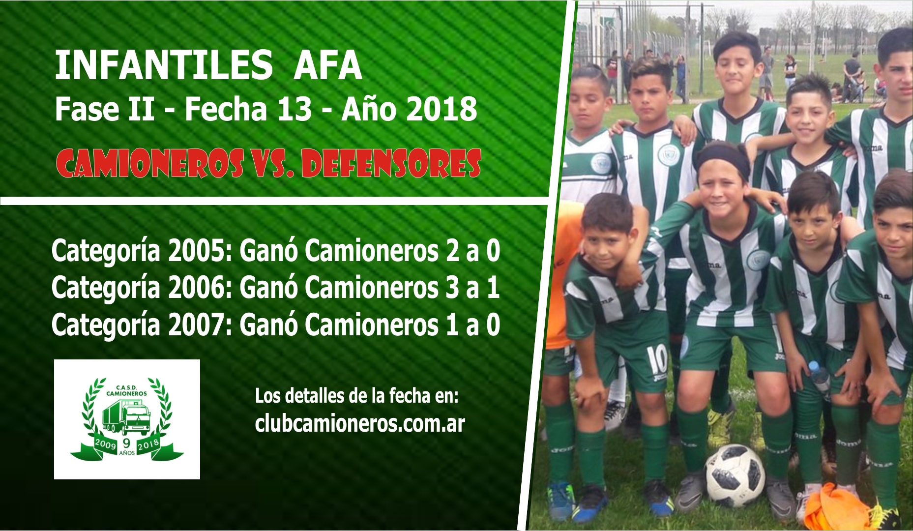 Los chicos de Hugo Magnani ganaron 3-1. Si nos dejamos llevar por el resultado parece Mucha diferencia, pero no lo fue. Abrió la cuenta Bilbao para Camioneros uy rápidamente igualó la visita, pero faltando diez para el final, González metió un bombazo de 35 metros y la pelota se clavó junto al poste izquierdo y jugada siguiente Barbieri, de pecho, marcó el tercero para la 2006. Ya para el final la 2007 también se hizo de la victoria con gol de Almada en la primera parte del partido, y no paso mucho más. Algún que otra llegada de peligro que terminaron en córner a favor pero él arquerito visitante no permitió que se aumente la ventaja.
