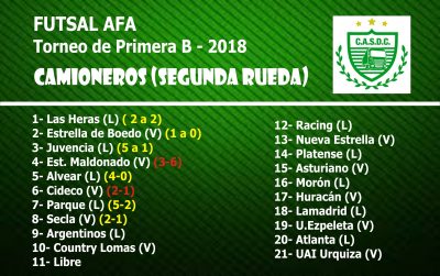 A. ël está cómodo, el grupo lo aceptó bien, se siente Camionero. Considero que las malas ya pasaron y justo en un momento crítico con uno de los jugadores más importantes como Camargo. Hoy cualquiera que juegue rinde». Claro que todo el mundo quiere «bajar» al Verde y para eso Barrios también tiene que decir «ellos comprendieron que no siempre se puede jugar lindo, a vecer hay que arremangarse y olvidarse del Sala para «meter». Nosotros necesitamos ganar, muchas veces no lo entendían, los demás nos juegan al 100, pero por suerte salimos. Estamos muy bien para los PlayOff pero no abandamos la ilusión primaria, aunque Racing nos sacó muchos puntos, tenemos chances matemáticas. Ahora jugamos con Country, luego quedamos libres. Ya estamos terceros y vamos por el segundo tiempo y éste grupo que se transformó en un gran equipo. No hay que bajar los brazos, tenemos sangre Camionera y vamos a ir al frente». Con buena gente y capacitada, así ¿Cómo no ir a la «guerra» por otro ascenso? ….