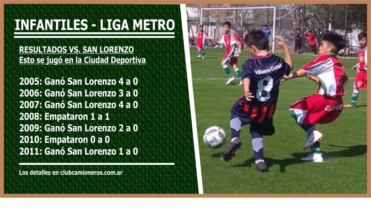 En la ciudad deportiva de San Lorenzo, en Bajo Flores, Camioneros enfrentó al local por una nueva fecha de la Liga Metropolitana de Fútbol Infantil. En esta ocasión, la jornada, que se aprovecho por el día del Maestro/a no dio rédito positivo en cuanto a resultado. El verde logró conseguir dos empates en la 2008 y 2010 (Suspendido en el entretiempo) y el resto cayó ante el Santo. La fecha se jugó en dos canchas desde la Categoría 2005 a la 2011. Pese a los resultados, Camioneros sigue adquiriendo experiencias y madurez futbolistica ante este tipo de rivales. En la fecha siguiente le toca enfrentar a Boca Juniors, en condición de visitante.