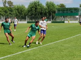 En primer turno, un conjunto compuesto por juveniles (en su gran mayoría) y algunos «grandes» empató sin goles frente al conjunto de Gerli. Fue muy interesante el desarrollo del mismo, buscando siempre la asociación y con tres jugadas claras de gol para el Verde. El entrenador Guillermo Calleri advertía en forma permanente en la atención ocupando los espacios vacíos y el juego a ras de piso. Con Chamorrito tirado por izquierda, Mamberti en traslación y Moyano con dinámica y sacrificio en el regreso, cerca estuvo de quedarse con la circunstancial victoria. Franco Vázquez tuvo la más clara pero no pudo ser, en el epílogo. Una interesante práctica inicial que deja un aliciente de saber que hay recambio.