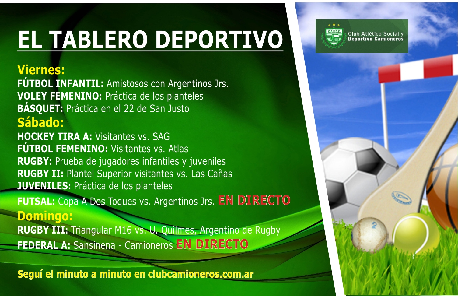 Con miles de Deportistas de CAMIONEROS diseminados a lo largo del país, otro nuevo finde comienza. Vení, enterate y seguinos por nuestras redes sociales en Tiempo Real.