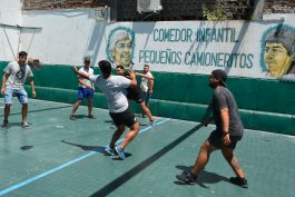 el comedor del sindicato «Pequeños Camioneritos» y hasta se animaron a colaborar en la cocina.
