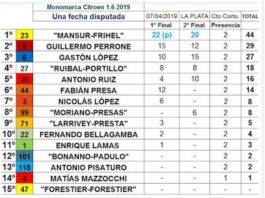 Estas son las Posiciones de la Monomarca Citroën 1.6, que volverá al ruedo el 26 de Mayo. Correrá nuestro crédito FABIÁN PRESA con el N* 44 y con coche nuevo. “Agradezco a la familia López por el gran esfuerzo que hicieron para brindarme uno de sus autos. También a Juan Cruz Talamona, “Curly” y el “Polaco”, que están trabajando en el mío para la segunda fecha.