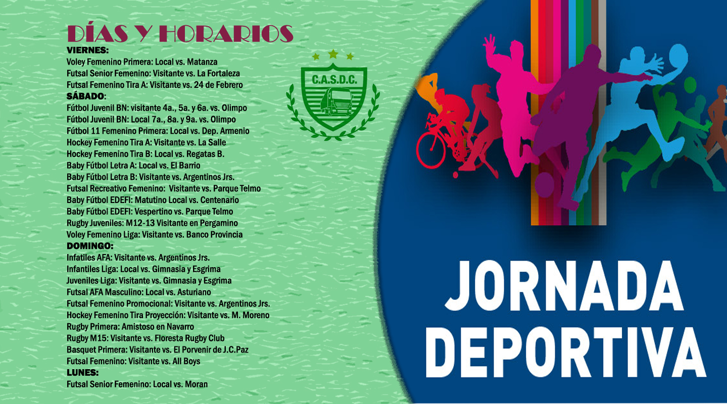 HACE CLICK EN EL DIARIO: Te vamos anticipando algunos horarios para el fin de semana, con los deportes del club. La actividad está a pleno, a full. CAMIONEROS participa en variadas disciplinas a lo largo y a lo ancho de la Argentina y S.É.U.O. vamos actualizando los tableros, para que estés informado.