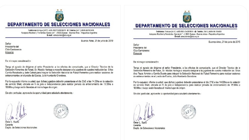 Jugadoras de Fútbol 11 y de Futsal son nuevamente convocadas para entrenar en el predio de Ezeiza. Aquí publicamos sendas cartas.