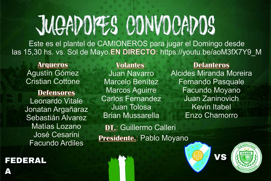 ⚽️ #FederalA: Estos son los jugadores convocados para viajar a Viedma, por el técnico Guillermo Calleri y afrontar la quinta fecha del certámen.
