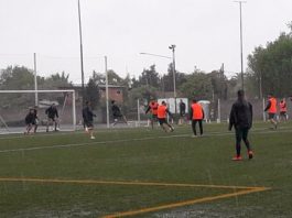preparadores físicos se dieron una vuelta por el gimnasio lindero a la calle San Juan para ver si allí podrían hacer algún trabajo, cosa que resultaba imposible. Pasadas las 10 de la mañana los equipistas se trasladaron al sintético y bajo una pertinaz