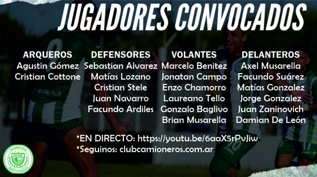Damos a conocer los 19 jugadores de #Camioneros, convocados por el entrenador Abel Alves, para viajar a Bahía Blanca y disputar su partido frente a @Olimpo_Oficial