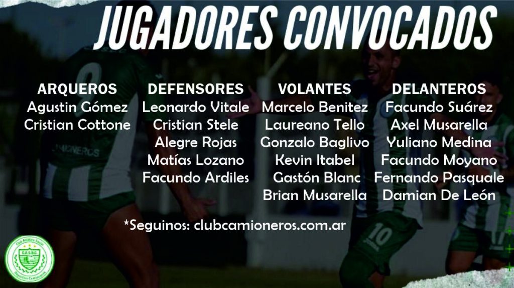 ⚽️ #FederalA: Este es el plantel de #camioneros que viajará a San Juan para disputar el partido del Domingo desde las 20.30 frente a Desamparados de San Juan.