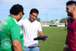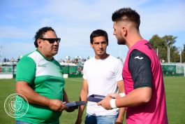El «Jefe», superó los 100 partidos con esta camiseta y el «Pollo» 120. Ayer en la previa del juego frente a Sol de Mayo, LUIS CÓRDOBA, Vicepresidente del club, le hizo entrega de sendas plaquetas conmemorativas, en la mitad de la cancha, quien le expresó el agradecimiento de parte del Presidente PABLO MOYANO y de toda la institución por defender los colores del Verde. Ampliaremos