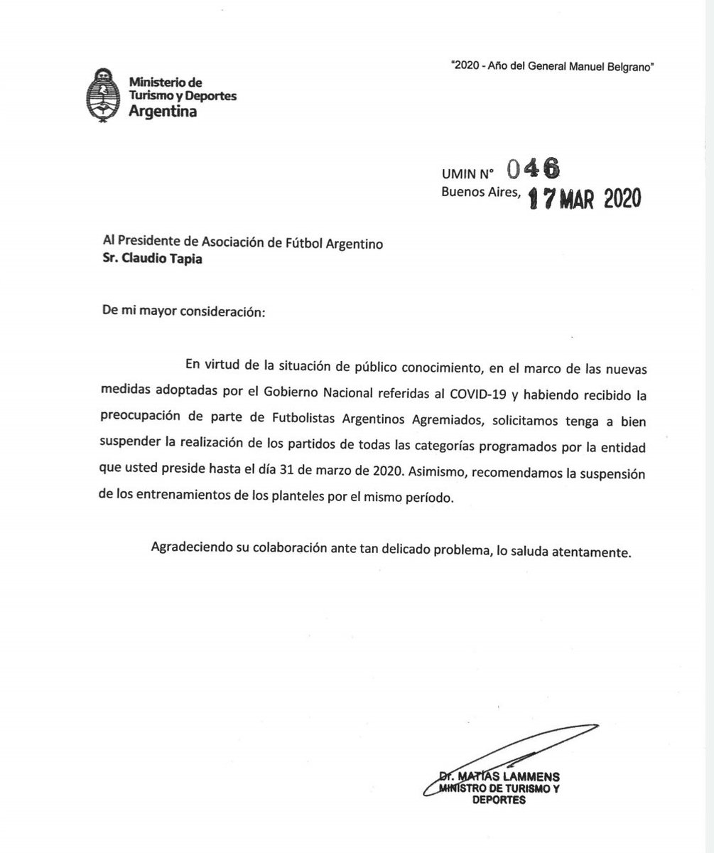 ➡️ El comunicado recientemente enviado por el Ministro de Deportes y Turismo Matías Lammens también alude a la disciplina en mención.