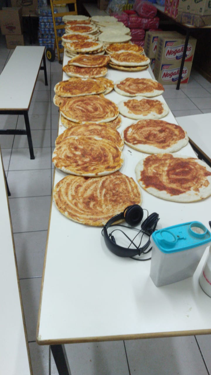 ¡Siempre colaborando!, sobre todo en éstos momentos de tanta necesidad e incertidumbre. En el Comedor Infantil Pequeños Camioneritos de La Boca. Un Centenar de «bollitos» convertidos en diferentes Pizzas para darle algo contundente a quienes lo requieren en forma permanente.