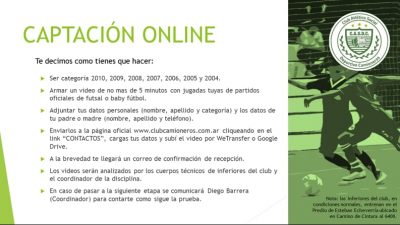 Utilizando las herramientas virtuales, que proliferan en éstos tiempos, CAMIONEROS, ha pensado que una buena forma de seguir activando la disciplina es la CAPTACION de jugadores para sus divisiones menores.