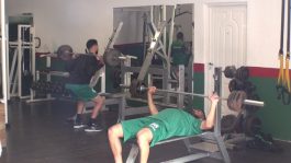 Un trabajo que se distribuye en diferentes grupos: algunos se trasladan al gimnasio con aparatos, lindero a la calle San Juan; otros con cinta y bicicleta al gim sobre las canchas de hockey y los arqueros, con Jonathan Zarza.