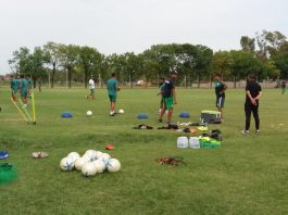 por la contienda histórica de Copa Argentina ante Vélez Sarsfield.Bajo la habitual indicativa de los Preparadores físicos Gustavo Silban y D’ Angelo centro su participativa en ejercicios de ablande y estiramiento, como así también en el último tramo de la mañana cerró el día con tandas de velocidad a lo largo