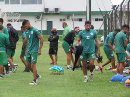 Tras esa alocución y la atenta compañía del ayudante de campo Marcelo Velazquez y los dos Profes, Gustavo Silban y D’angelo, éstos últimos desplegaron una serie de ejercicios y trotes enderedor del campo de juego, junto a Jonathan Zarza y los tres arqueros, mientras el médico y el kinesiólog