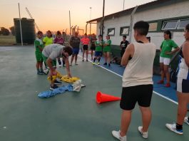 Antes de ejercer la parte con pelota, se pudo ver esforzarse al grupo en la parte física con los profesores Federico Palacios y Luz Acevedo, con diversos ensayos con conos y tortuguitas.