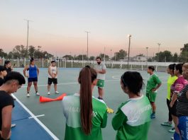 Sigue la puesta a punto de Las Espartanas, en una tarde-noche calurosa, las dirigidas por Federico Palacios entrenaron en la cancha de cemento del Predio de Camioneros.