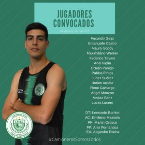 12.Facundo Gelpi 1,Emanuelle Castro ,19.Mauro Godoy ,15.Maximiliano Werner 16.Federico Tavare .3.Ariel Niglia ,23.Braian Panigo ,11.Pablos Pintos ,7.Lucas Suárez ,10.Braian Arrieta, 8.Rene Camargo 13.Ángel Monzon, 6.Matias Sanz, 14.Lucas Lucero