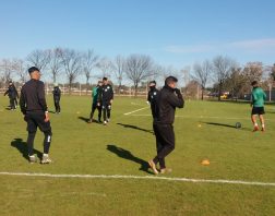 Luego del breve accionar de calentamiento, divididos en dos equipos de 11 por cada lado, la práctica dio paso a un encuentro de 30′ minutos corridos, donde el DT Livio Prieto probó y alternó variantes en lo futbolístico.