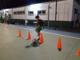 La parte técnica con la pelota la explicó en primera parte Leandro Benítez, las instrucciones eran conexiones con pivote y control del balón, giros invertidos, etc.